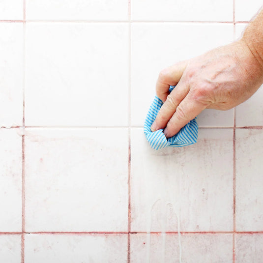 Luckily, contamination can be easily removed with regular cleaning. Our bathroom cleaner will do the trick! But you might need to do some extra hard scrubbing with an old toothbrush to remove the stains.