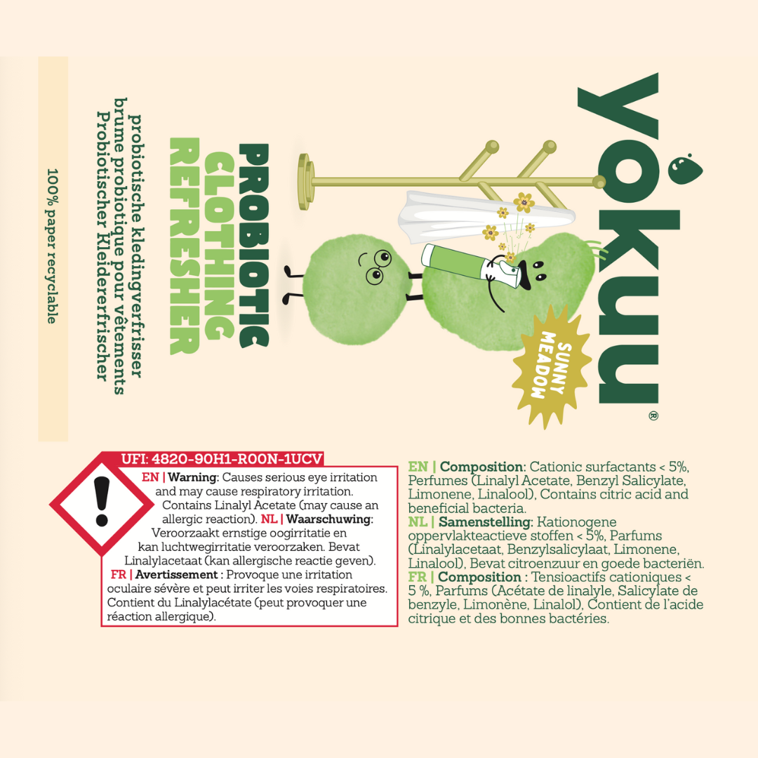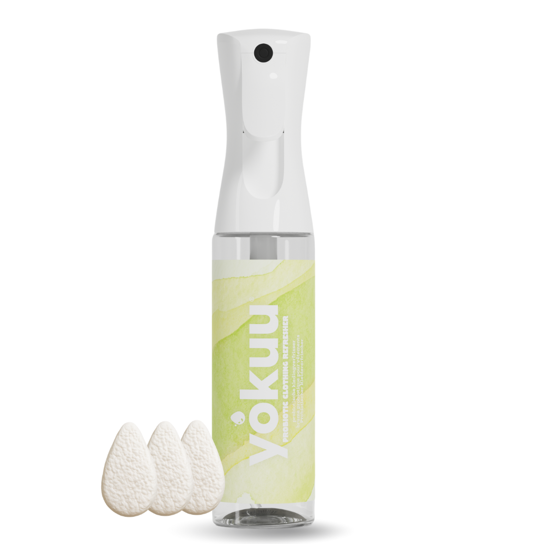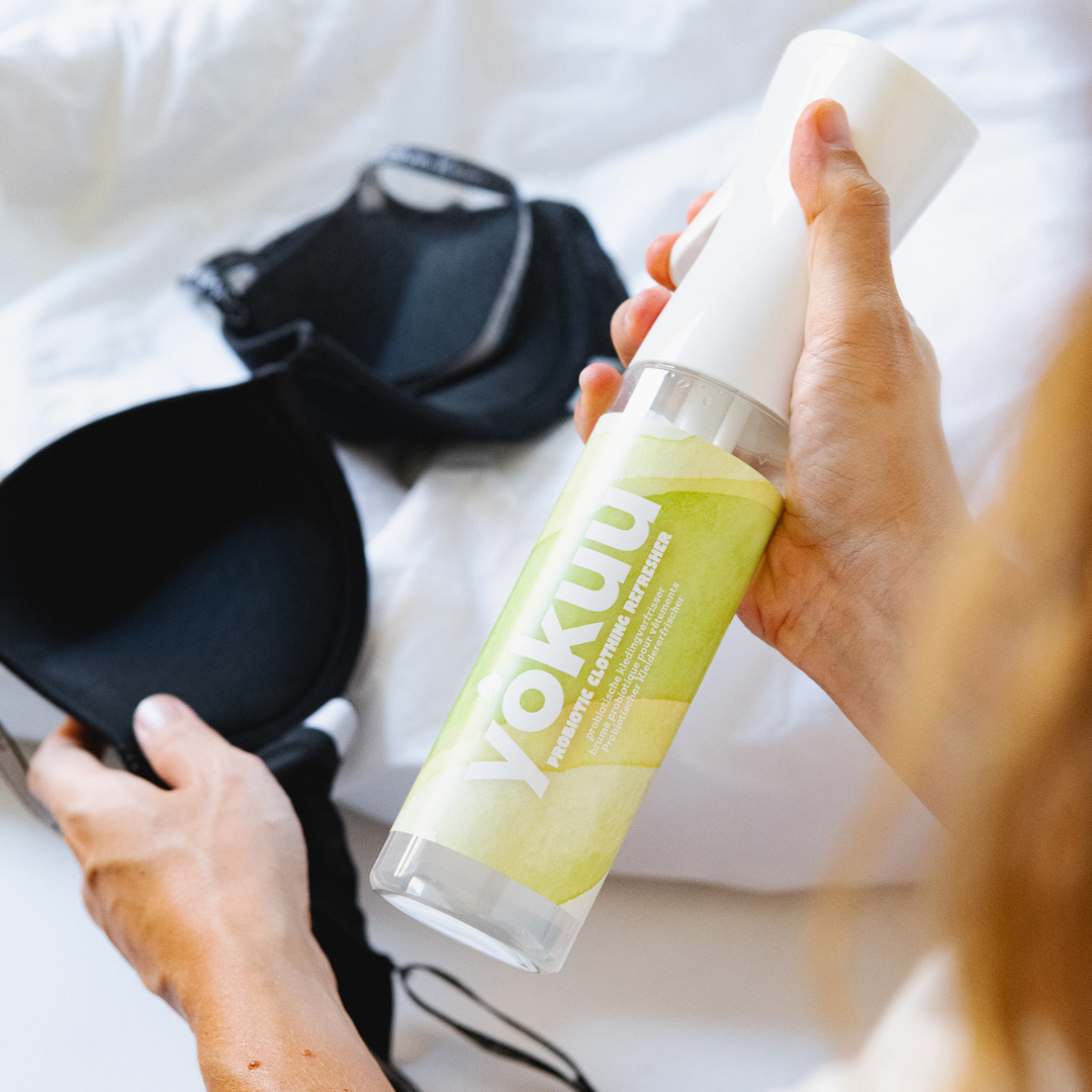 Unser probiotischer Kleidererfrischer entfernt Gerüche wirklich. Die Probiotika zersetzen die Geruchsmoleküle in deiner Kleidung, anstatt sie nur zu überdecken.