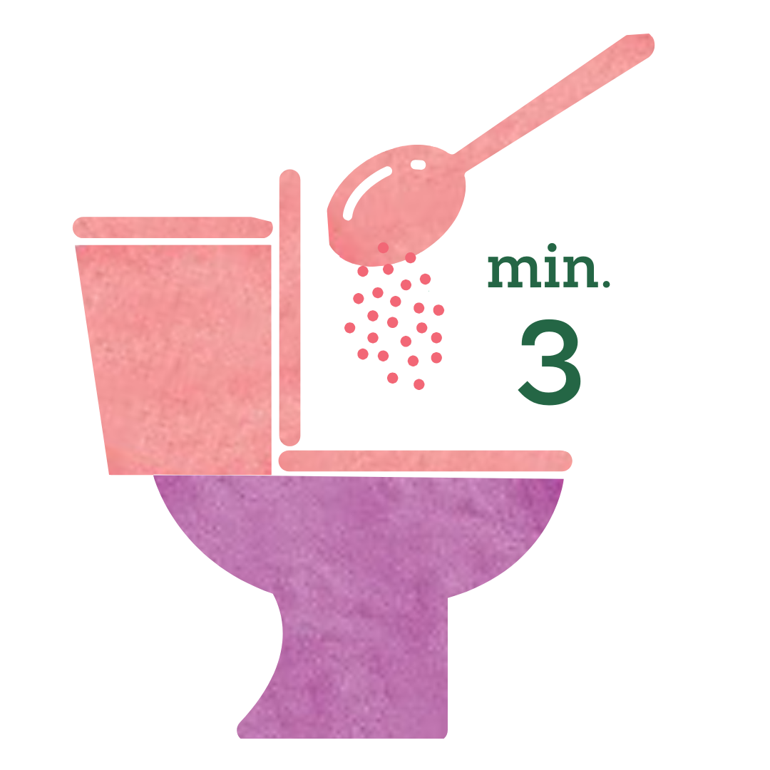 2 gehäufte Löffel (±100 g) in die Toilettenschüssel geben. Für den besten Schaumeffekt vorher einen Spritzer warmes Wasser hinzufügen – so steigt der Schaum schneller und höher. Mindestens 3 Minuten sprudeln lassen. Sobald sich der Schaum gesetzt hat, können Sie kurz bürsten oder für eine gründlichere Reinigung länger einwirken lassen. Spülen Sie, wenn Sie zufrieden sind. Bei hartnäckigen Flecken über Nacht einwirken lassen. Für beste Ergebnisse 1–2 Mal pro Woche anwenden.