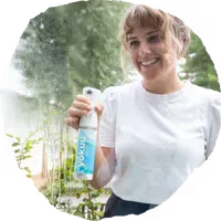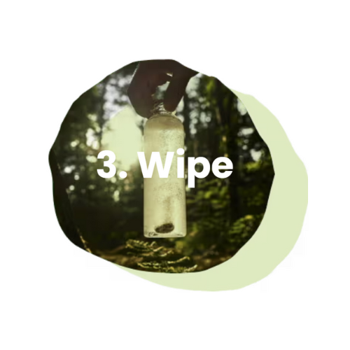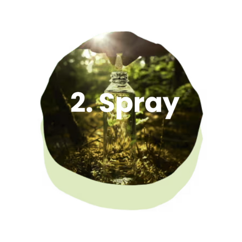 Vaporisez sur la surface à une distance de 20 cm. De petites gouttes doivent se former, mais elles ne doivent pas couler ou se répandre (signe que vous avez utilisé trop de produit). N'oubliez pas que lorsque vous utilisez notre nettoyant pour vitres, moins il y en a, mieux c'est ! Essuyez et séchez immédiatement avec un chiffon.