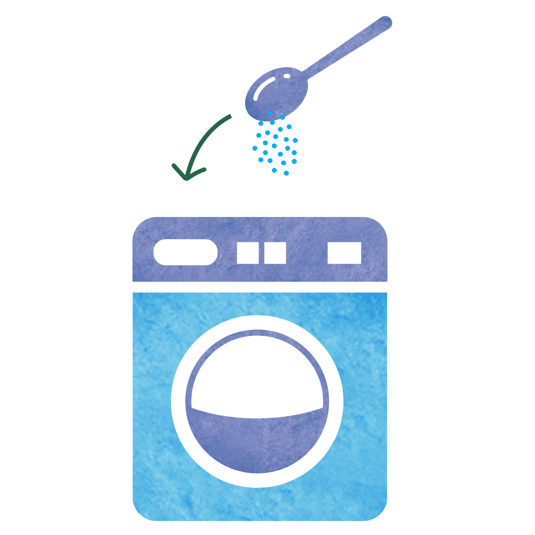 Gebruik A is voor de allerluisten onder ons: een eetlepel (30g) in het wasmiddelbakje, samen met je gewone wasmiddel. Bij hardnekkige vlekken mag je er twee gebruiken.
