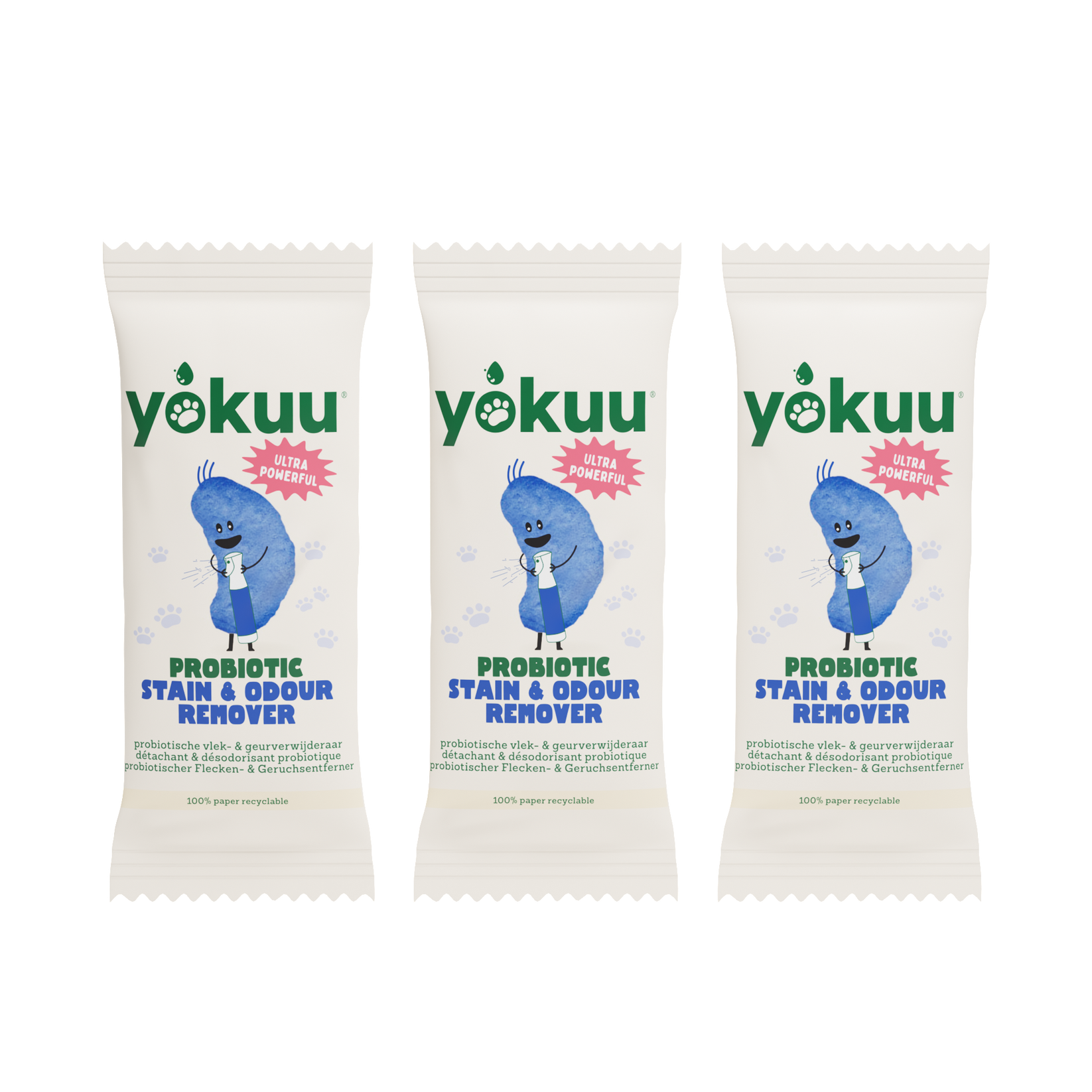 The undissolved pearl is concentrated and may cause eye or airway irritation if handled incorrectly. Once dissolved in 300 ml of tap water, the spray is 100% pet-safe, hypoallergenic, and gentle on fabrics and fur. The microbial strains we use are QPS-labelled and food-safe.